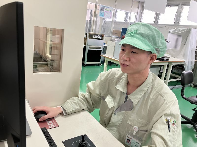 こんにちは。半導体開発部デバイス開発二課の松井です。現在、技術部門で開発職として働いています。主に今ある製品を新しいものにする「モデルチェンジ」やそれに必要な技術の検証に携わっており、日々の業務を通じて課題の解決や検証での新しい発見などにやりがいを感じています。大学では電子系を専攻し、その知識を活かせる場で働きたいと思い、現在の会社を選びました。